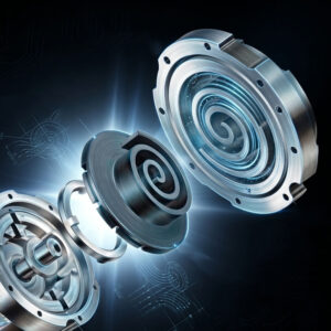 Рабочее колесо с лопатками разгоняет газ от центра к периферии. Кинетическая энергия преобразуется в давление в диффузоре. Многоступенчатые конструкции создают высокое давление при огромных объёмных производительностях (тысячи м³/мин). Применение: аэрация, вентиляция крупных объектов, газотурбинные установки, нефтегазовая отрасль.