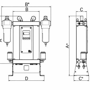 - Оптимизированный 10-минутный рабочий цикл: В отличие от стандартных моделей, в серии A-DRY время цикла распределено так (5 мин — адсорбция, 4 мин — регенерация, 1 мин — повышение давления), что это значительно снижает износ компонентов и повышает общую надежность.
