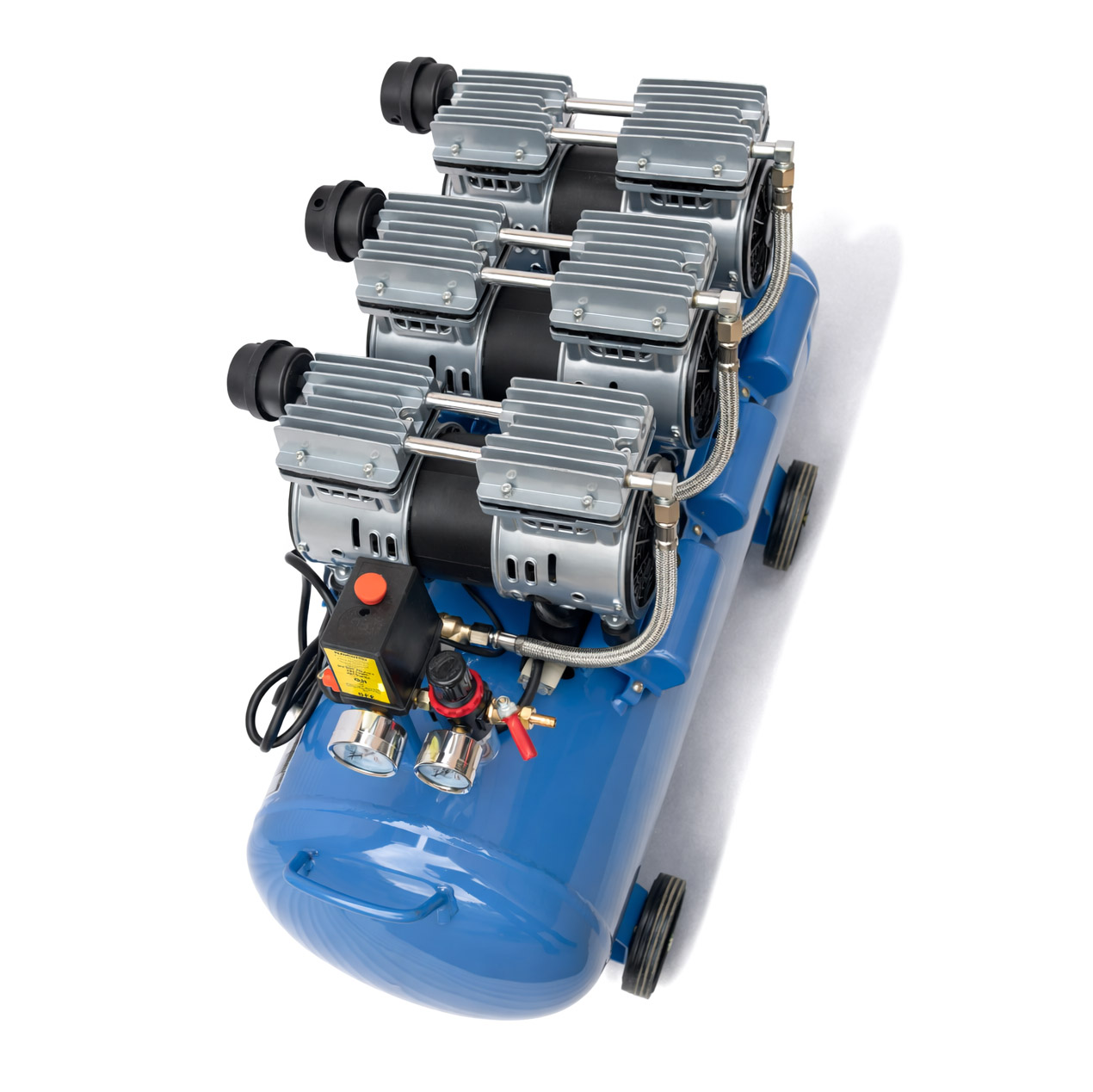 MZB-550H-65 — это профессиональный безмасляный компрессор мощностью 1,65 кВт (3 блока по 0,55 кВт), оснащенный 65-литровым ресивером и предназначенный для генерации чистого сжатого воздуха. Благодаря уникальной трехдвигательной компоновке и низкому уровню шума, устройство является идеальным решением для стоматологических клиник, лабораторий и высокотехнологичных мастерских, где требуется высокая производительность при минимальном звуковом воздействии.