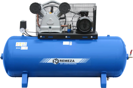 Установлены два манометра (один показывает давление в ресивере, второй — на выходе) и регулятор давления для точной настройки под конкретный инструмент.