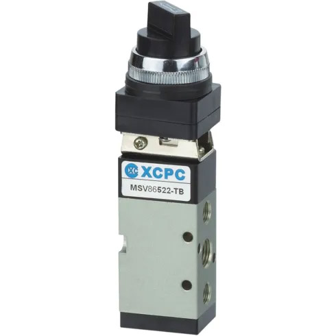 MSV98322-TB — это трехлинейный двухпозиционный (3/2) пневматический распределитель с механическим управлением типа «селектор» (Selective Knob). Устройство предназначено для ручного переключения потоков сжатого воздуха и фиксации выбранного рабочего положения, что делает его незаменимым в системах управления, где требуется визуальный контроль и исключение случайного срабатывания.