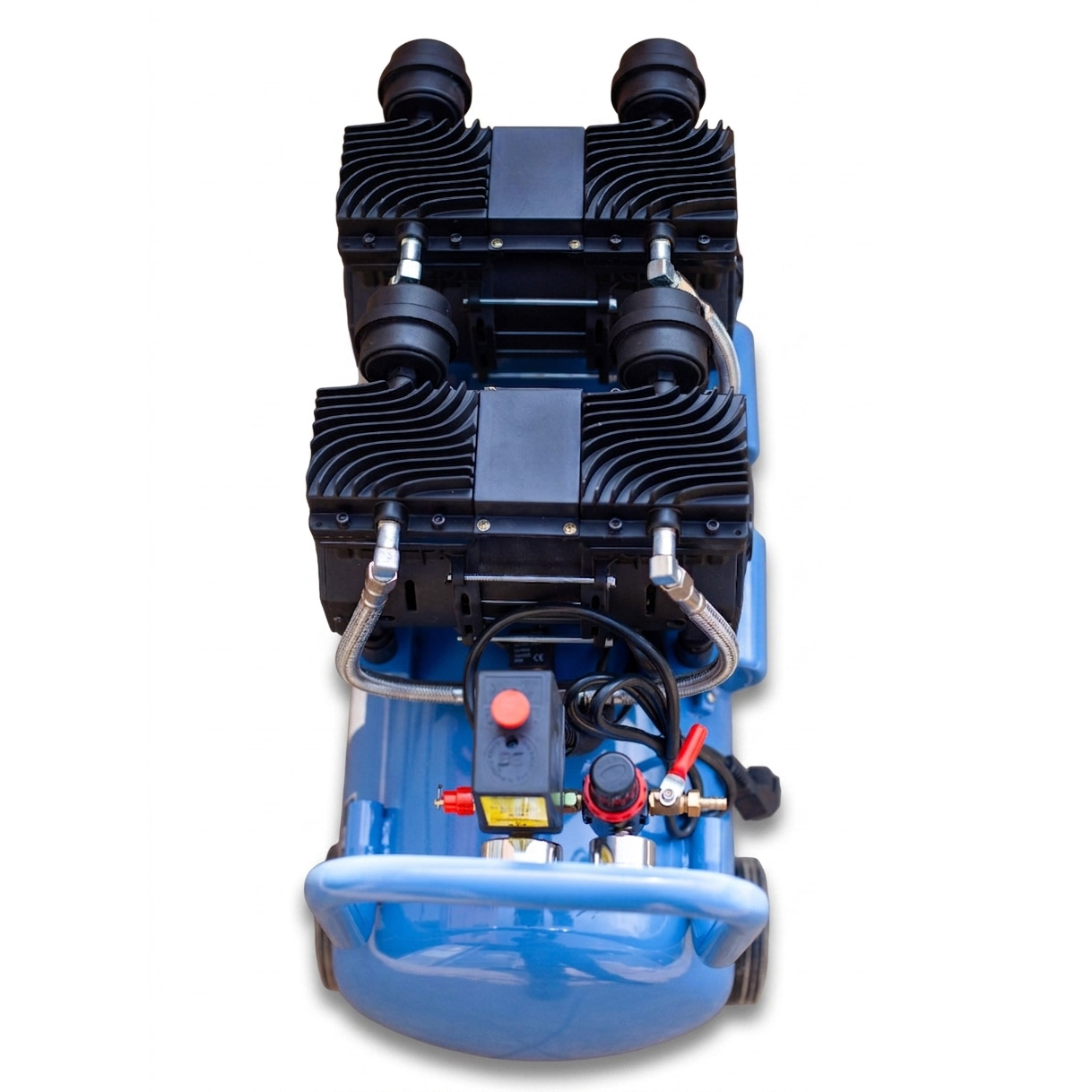 MZB-1200H-50 — это высокопроизводительный безмасляный бесшумный воздушный компрессор поршневого типа, предназначенный для задач, требующих чистого сжатого воздуха и низкого уровня шума. Установка оснащена ресивером объемом 50 литров и суммарной мощностью двигателей 2,4 кВт, что делает её подходящей как для медицинских учреждений, так и для прецизионных работ в мастерских.