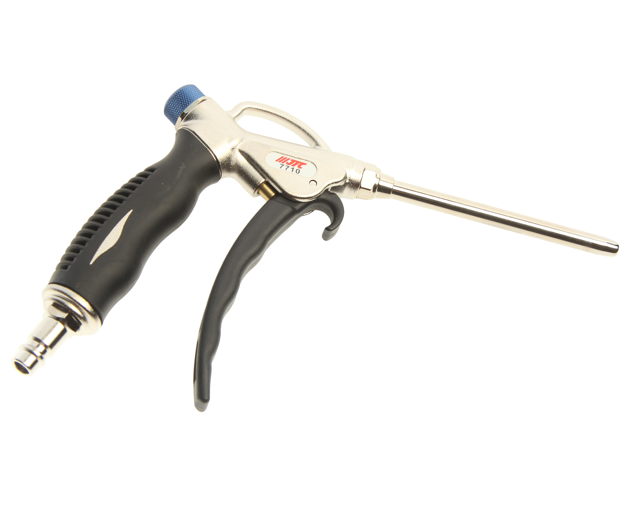 JTC-7710 — это профессиональный пневматический инструмент, предназначенный для очистки поверхностей и труднодоступных узлов механизмов с помощью направленной струи сжатого воздуха. Модель оснащена встроенным регулятором потока и удлиненной трубкой (110 мм), что обеспечивает прецизионный контроль обдува при обслуживании сложного промышленного и автомобильного оборудования.