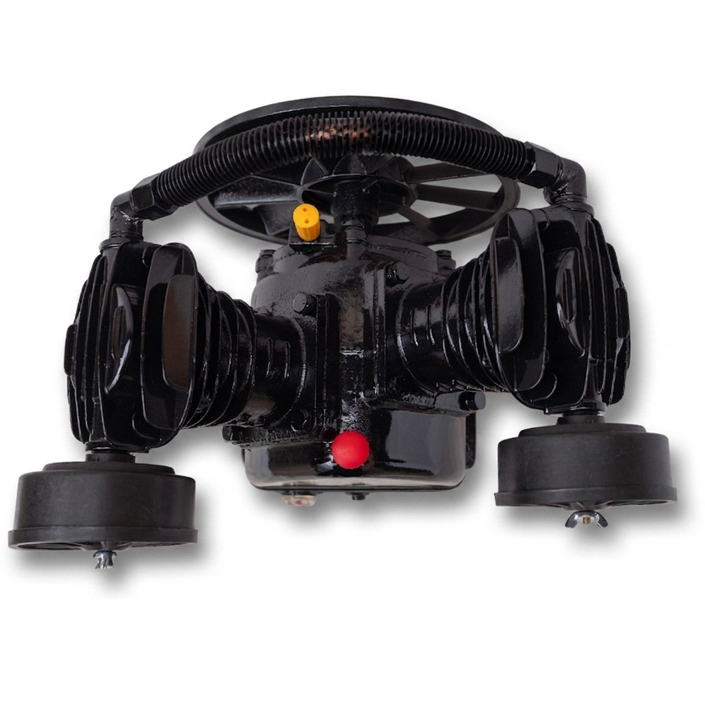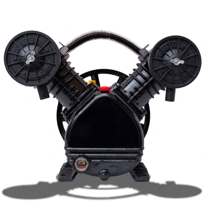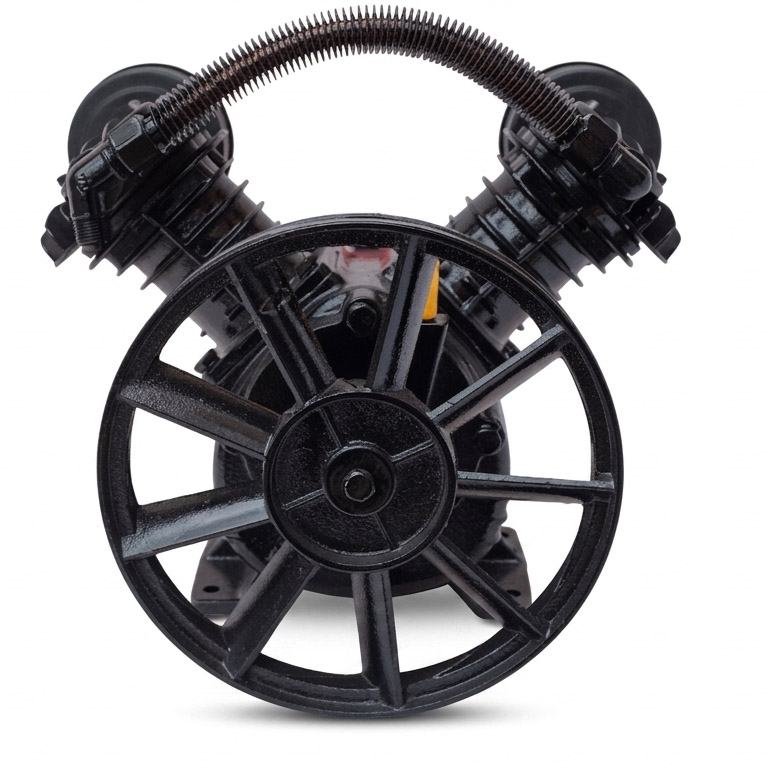 - Двухпоршневая схема с противоположными цилиндрами обеспечивает равномерное сжатие, минимальную пульсацию и более стабильный воздушный поток по сравнению с однопоршневыми моделями.