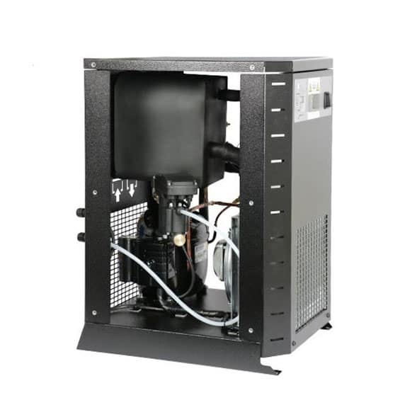 - Принцип работы «3-в-1»: Осушение происходит в высокоэффективном трехступенчатом теплообменнике (воздух-воздух, воздух-хладагент и встроенный демистер), что обеспечивает компактность и надежность отделения влаги.