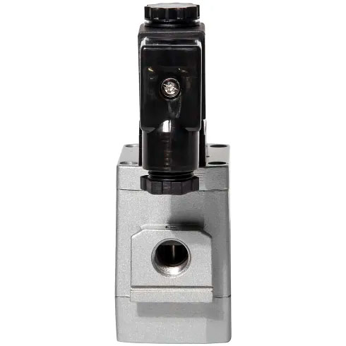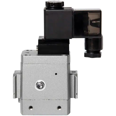 - Комбинированная функциональность 3/2. В выключенном состоянии клапан перекрывает подачу и сбрасывает остаточное давление из системы в атмосферу, что позволяет использовать его как элемент безопасности.