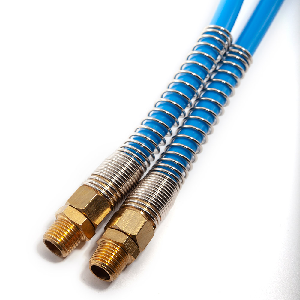 • Покрасочные работы: Существуют специальные двойные шланги (Twin Paint Hose), где одна линия (полиуретановая) подает воздух, а вторая — лакокрасочный материал к краскопульту.