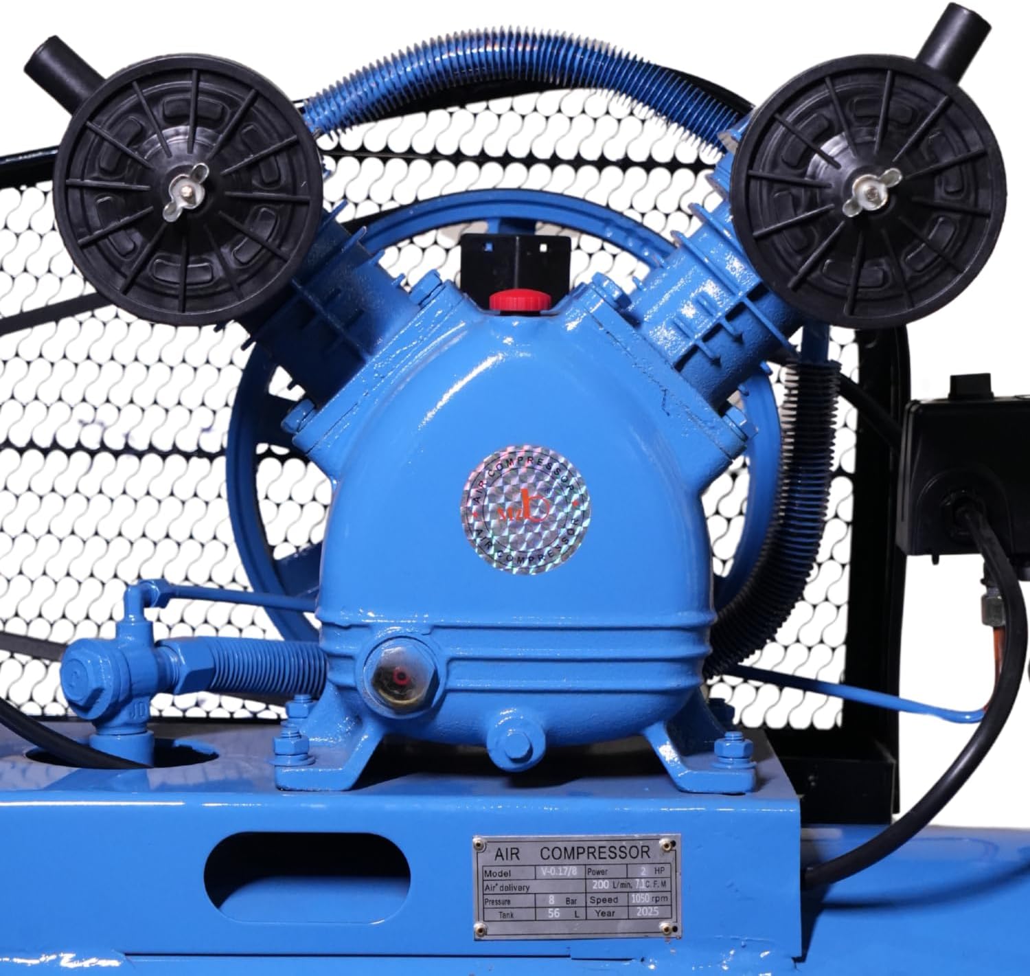 Поршневой компрессор V-0.25/8 с ресивером на 70 литров — это мощная и выносливая машина, созданная для тех, кому стандартных бытовых моделей уже недостаточно. Индекс «V» указывает на двухцилиндровую V-образную конфигурацию головки, которая обеспечивает высокую производительность и эффективное охлаждение.