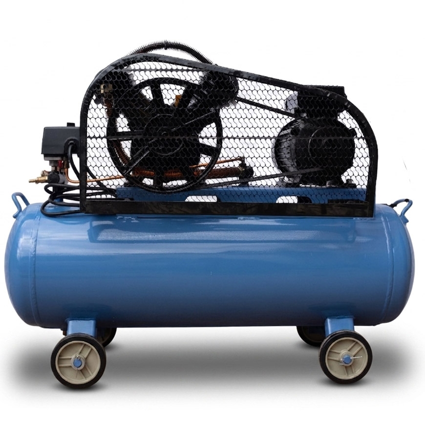 - Ресивер 70 литров — «золотая середина». Большой запас воздуха позволяет двигателю делать паузы для охлаждения, а компрессор остаётся достаточно компактным для перемещения по цеху или мастерской.