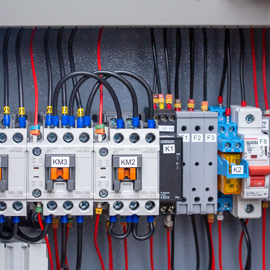• Контроль фаз: После подключения фазных проводов проверьте реле К1 в электрошкафу — его диоды должны светиться постоянно, что подтверждает правильную последовательность фаз.