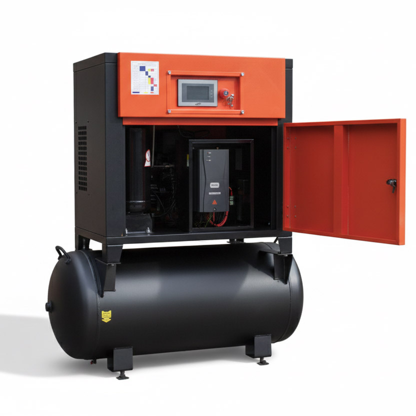 Компрессор ZM-5.5-160 — это компактная силовая установка, объединяющая в себе преимущества винтового блока и встроенного накопителя воздуха. В отличие от шумных поршневых моделей, этот аппарат спроектирован для интенсивной работы в режиме 24/7, обеспечивая стабильный поток воздуха без пульсаций.